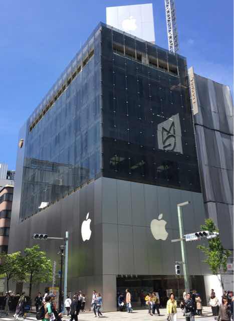 アップルストアは大混雑でした。屋上でリンゴマークが回転しているのに初めて気づきました。