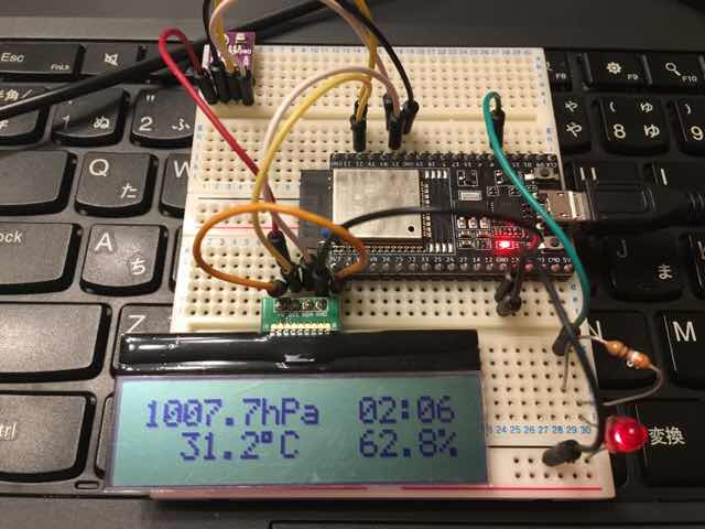 今は動きがわかるように毎秒時間表示をしてます。LCDの右上に表示されている02:06がそうです。1分毎に測定した時に測定値が変わります(変化があれば)。5分毎にIoTプラットフォームにデータをアップすると00:00にリセットされます。