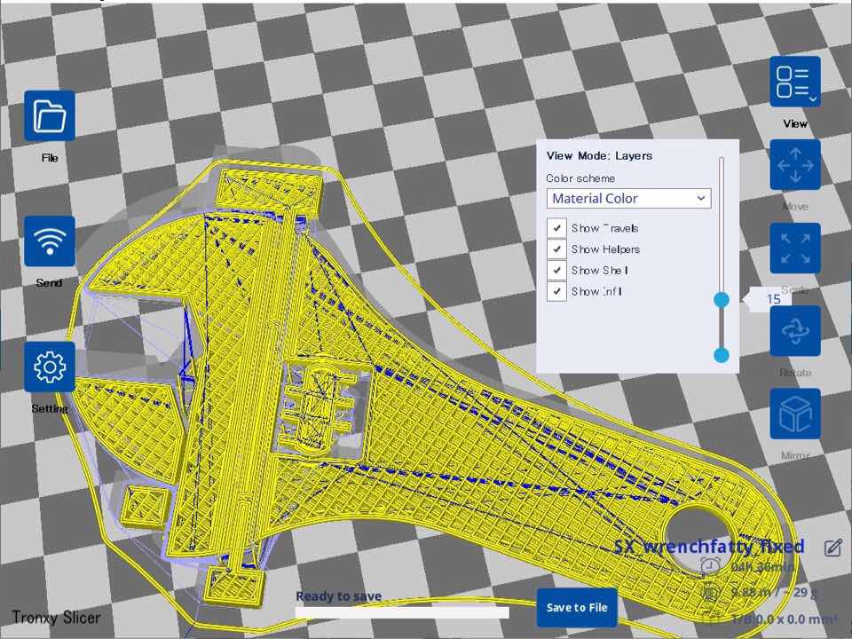 TRONXY XY-2 Pro付属のスライスツールでスライスすると、スライス結果が見えます。スライダを動かすと表示層がCT画像のように変わっていき面白い。